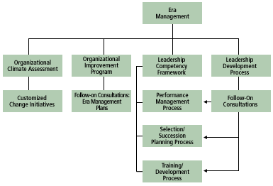 As the Era Management process is positioned in the organization, we expand on its impact by introducing supporting programs and approaches that reinforce and integrate the strategies. The figure below represents the integrative framework that can evolve from a successful Era ManagementSM intervention.